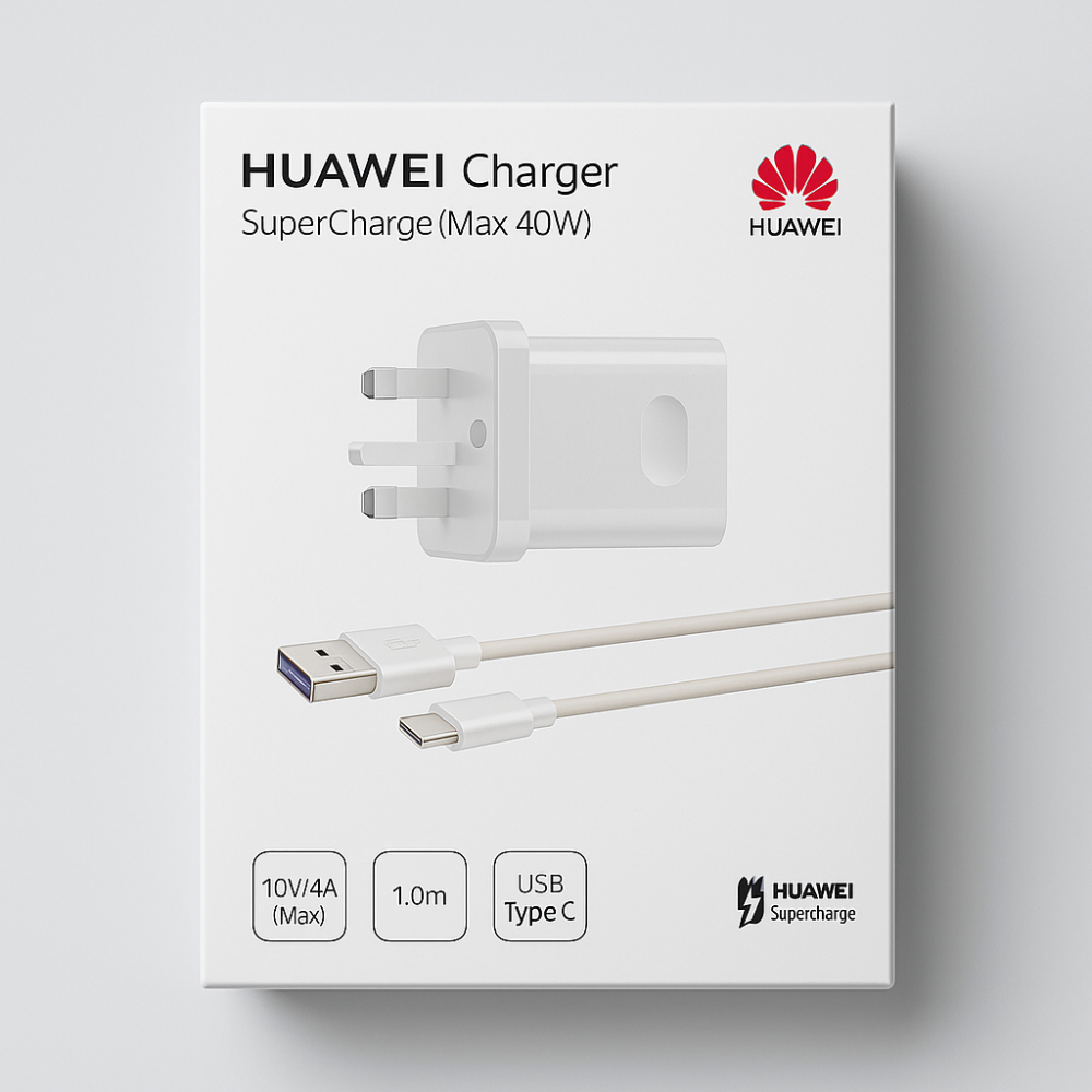 شاحن هواوي 40 واط أصلي 100% - شحن فائق السرعة USB Type-C مع ضمان 6 شهور